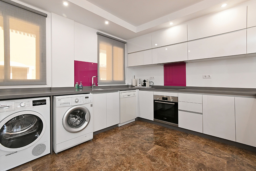 This modern two bedroom two bathroom apartment has a terrace with outdoor dining facilities, a gas barbecue and distant sea views, it is well furnished and equipped. There is free wifi internet access.