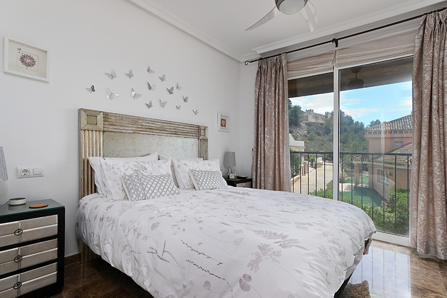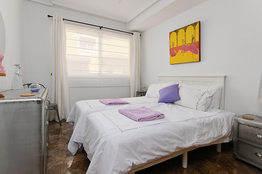 The master bedroom has a king-size double bed, patio doors to a juliette balcony and an en-suite bathroom with basin, wc and walk-in shower. The second bedroom has twin beds which can be made as a double if preferred and the use of a separate bathroom with basin, wc and walk-in shower.