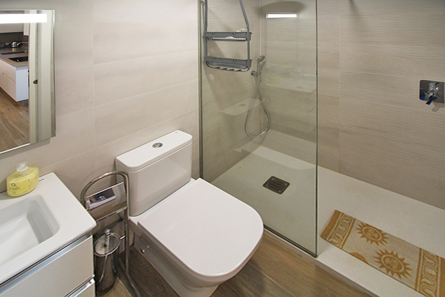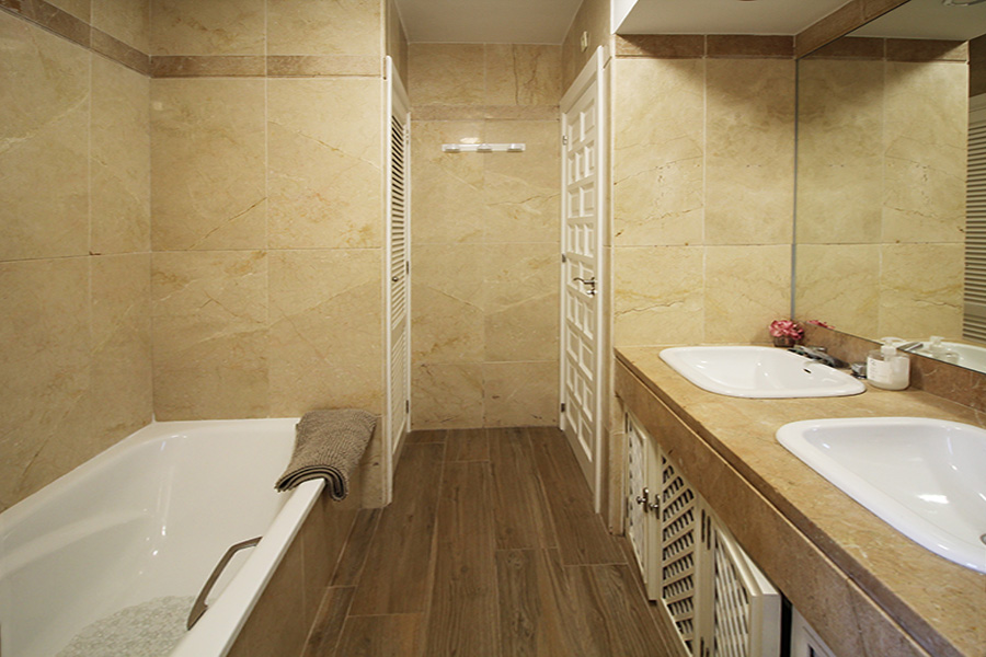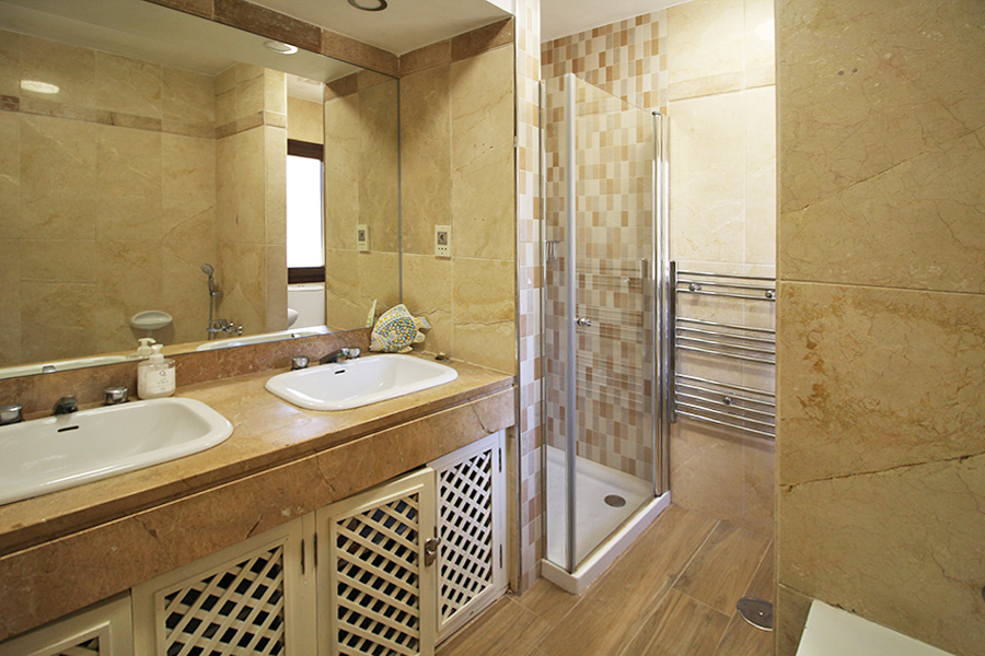 There are two bedrooms and two bathrooms. The master bedroom has a double bed and the second bedroom has a twin beds which can be made into a double bed if preferred. Bathroom one has twin wash basins, wc, bath and a walk-in shower. Bathroom two has a wash basin, wc and a walk-in shower.