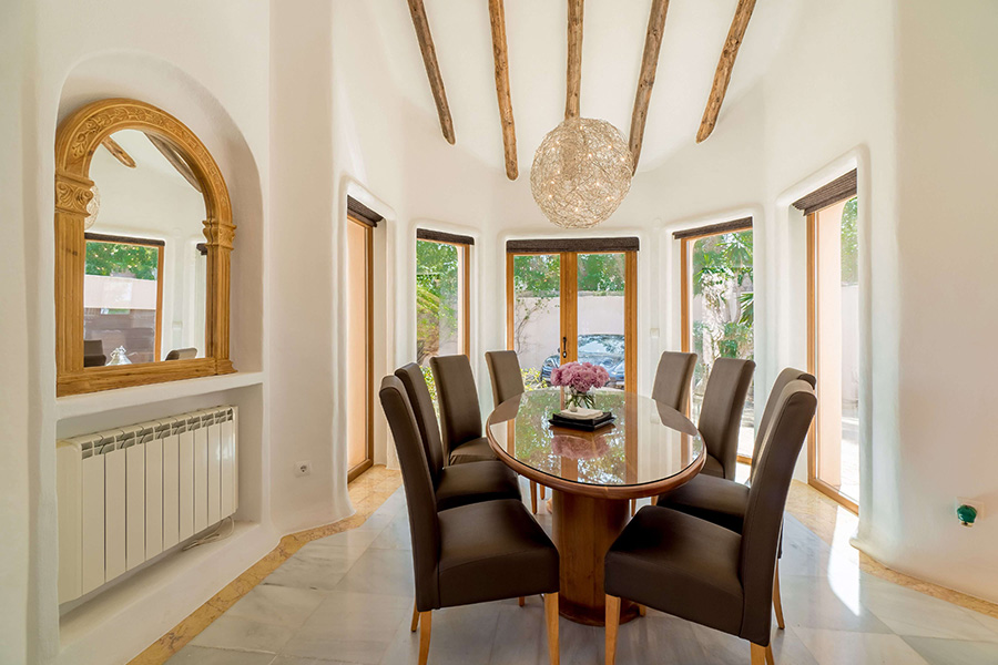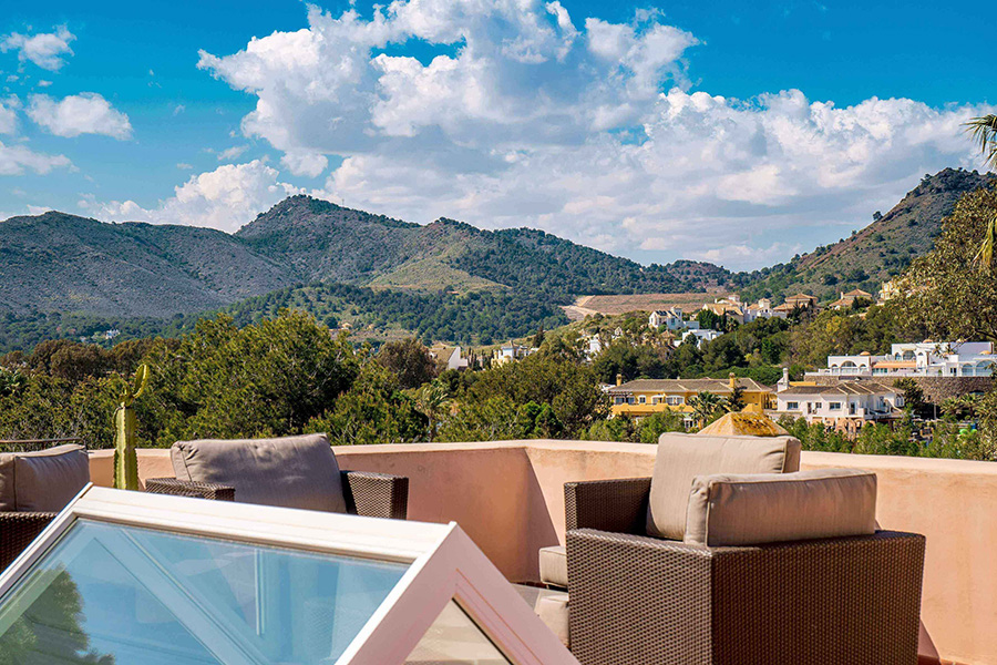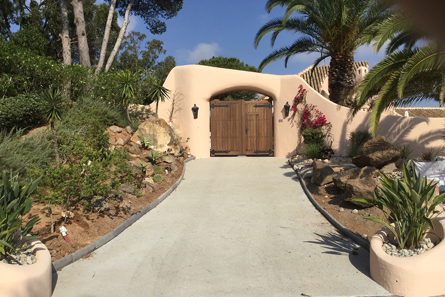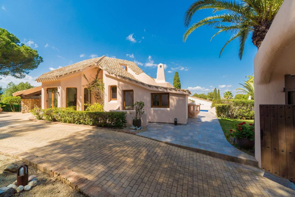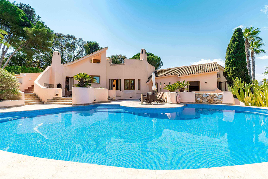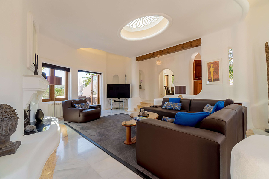 This villa is secluded with a gated entrance and walled terrace areas. It has a private freeform swimming pool, outdoor dining area and barbecue, outside lounge area with sofas and sun loungers. It also has a private gate into the Racquets Club.