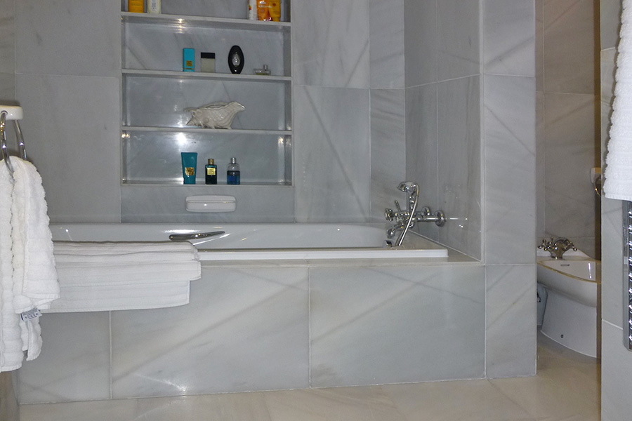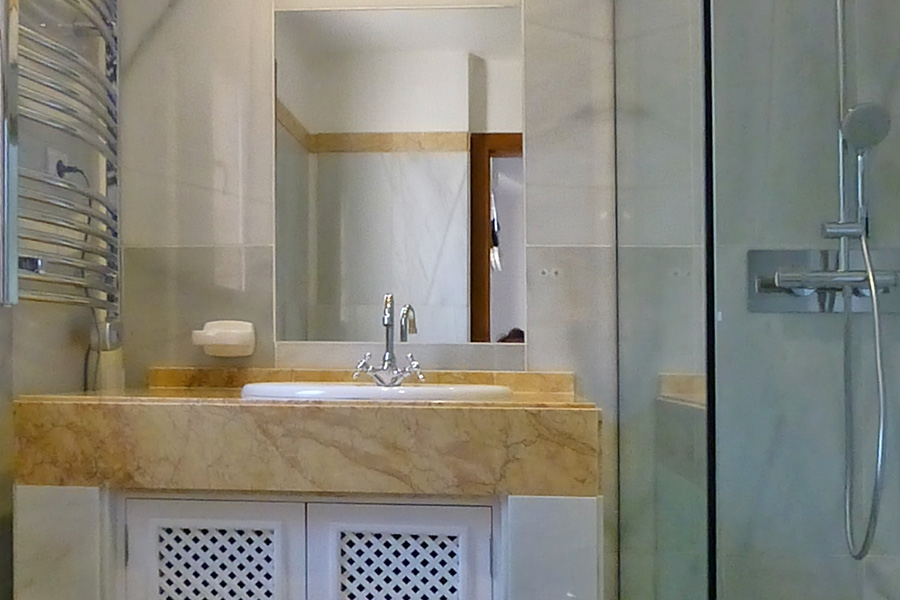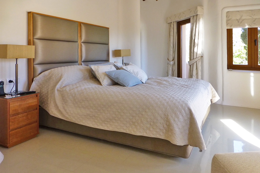 Master bedroom – King size bed. En-suite bathroom – Walk-in shower, bath, basin and wc.