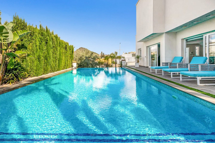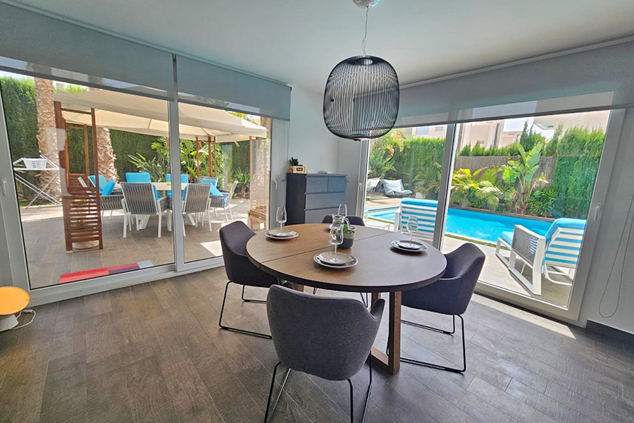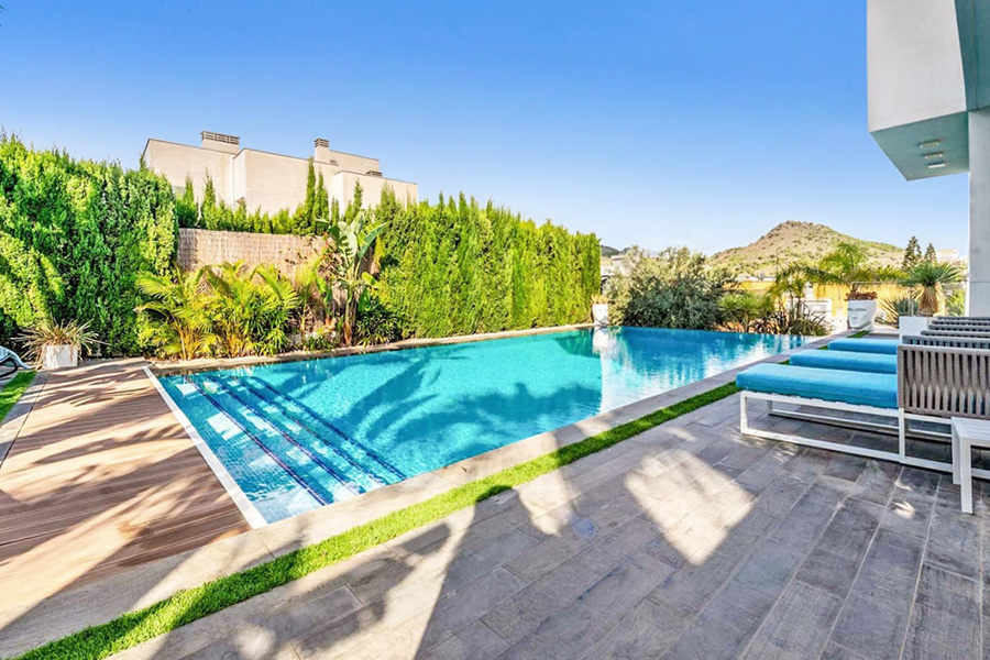 In La Manga Club Resort, modern detached villa, fully air conditioned. Large private pool and gardens, private terraces and barbecue facilities. Spacious accommodation, in a central location. Free wireless internet available. Optional pool heating is available at £380.00 per week. Please note that the temperature of the pool cannot be guaranteed even when heated, as this will be weather dependent, particularly during the winter months.